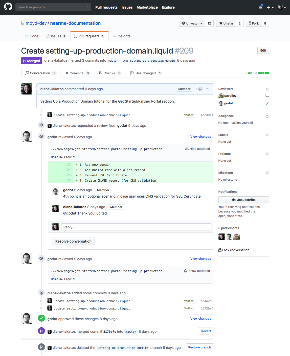 A documentation topic going through the editorial workflow on Github.